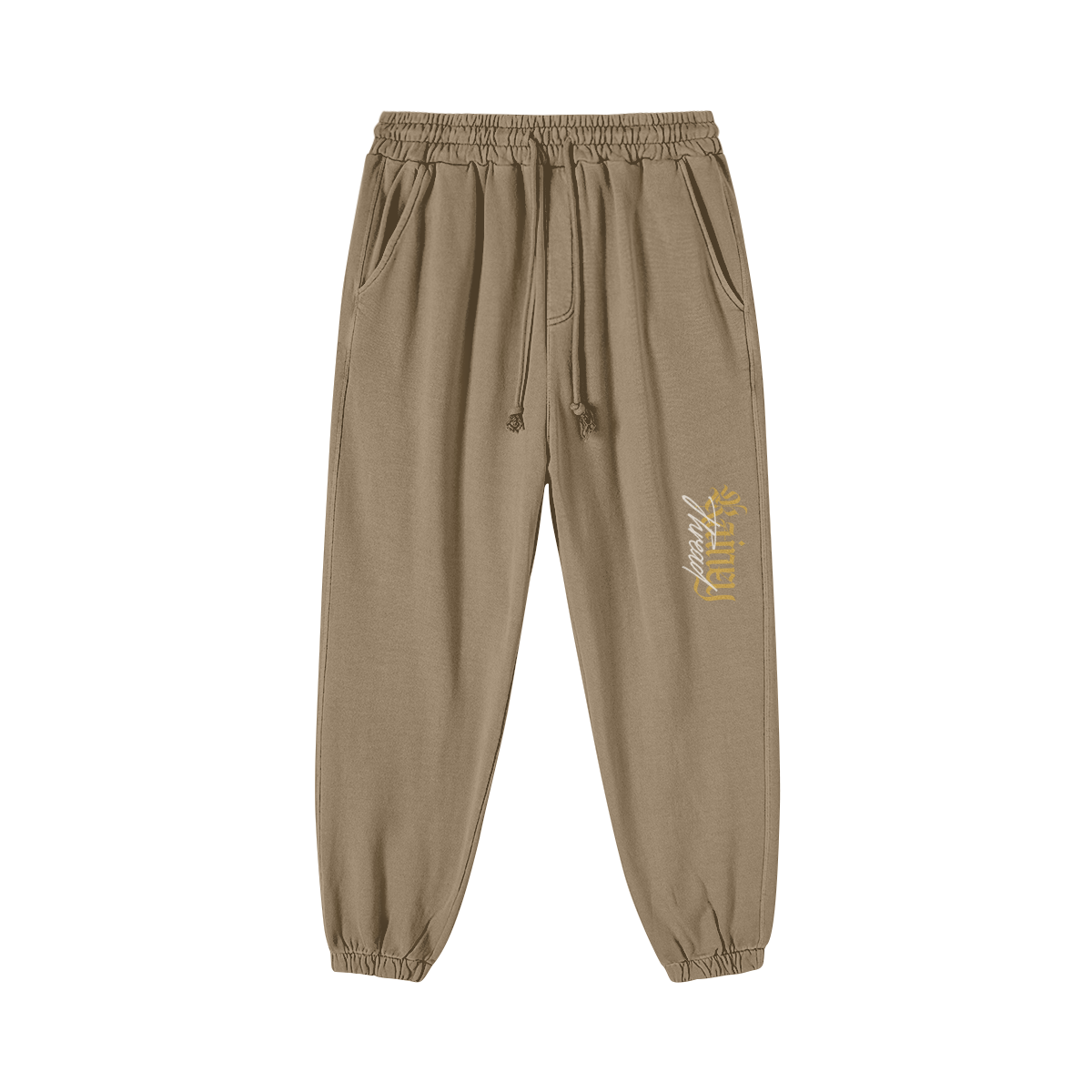 - Frayed drawstring