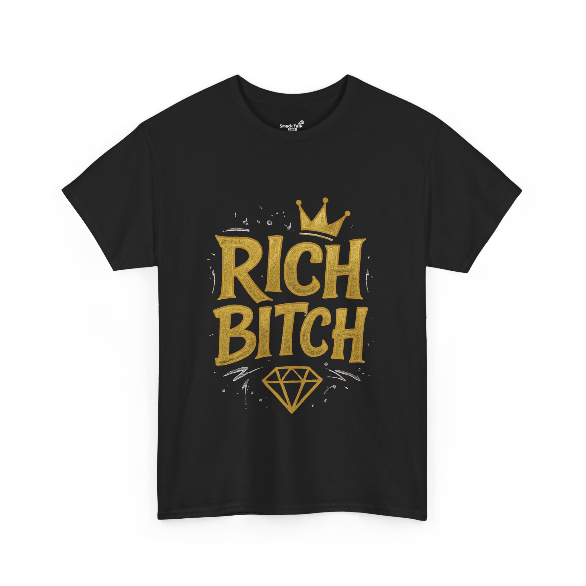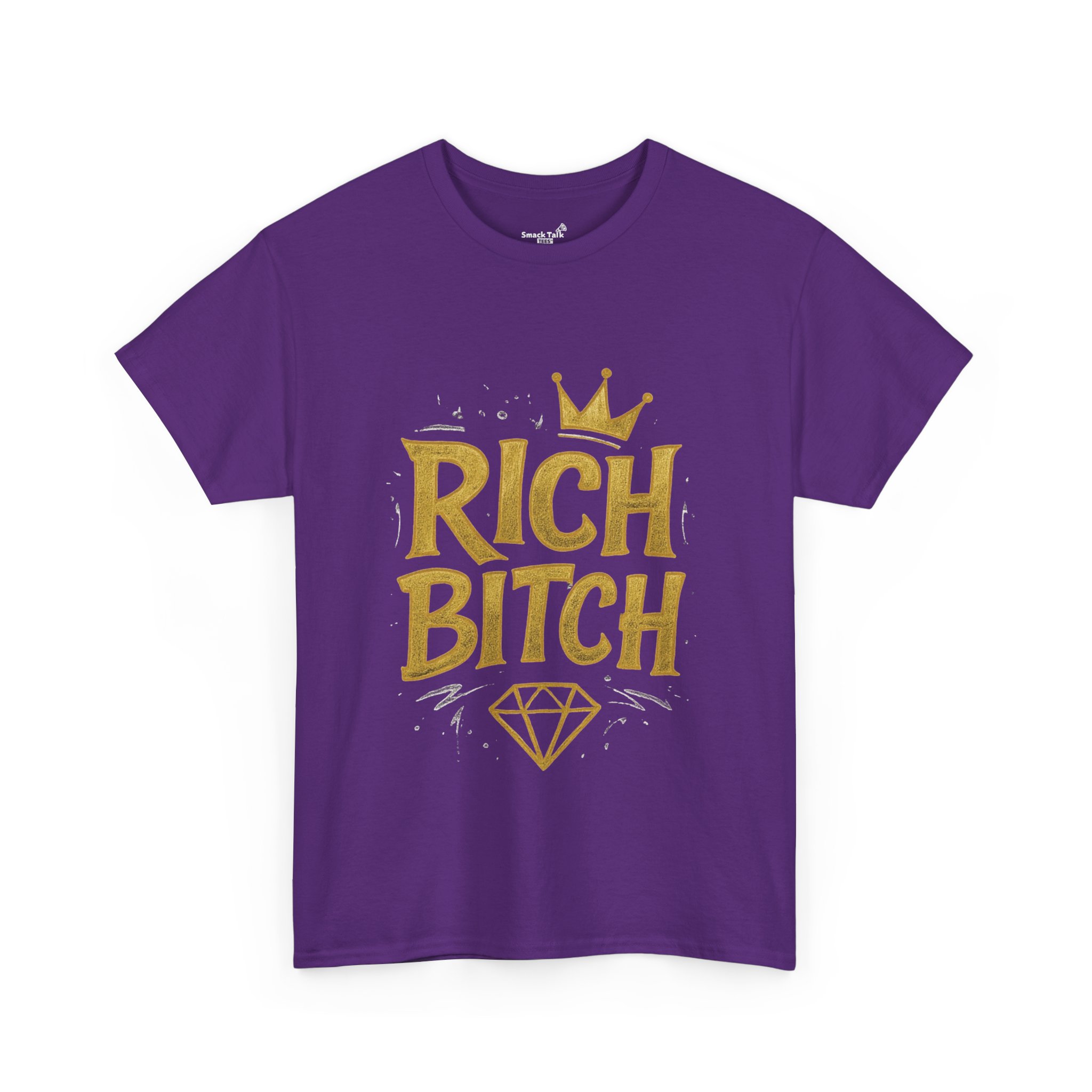 Urban graphic tee shirt with a bold ‘Rich Bitch Tee’ design. Gives off a stylish and edgy vibe perfect for fashion-forward individuals. Great for those who love statement pieces and want to stand out. Suitable for casual wear or to make a statement at parties and events. Ideal for fashionistas and trendsetters. Relevant for celebrations like birthdays, bachelorette parties, or music festivals.